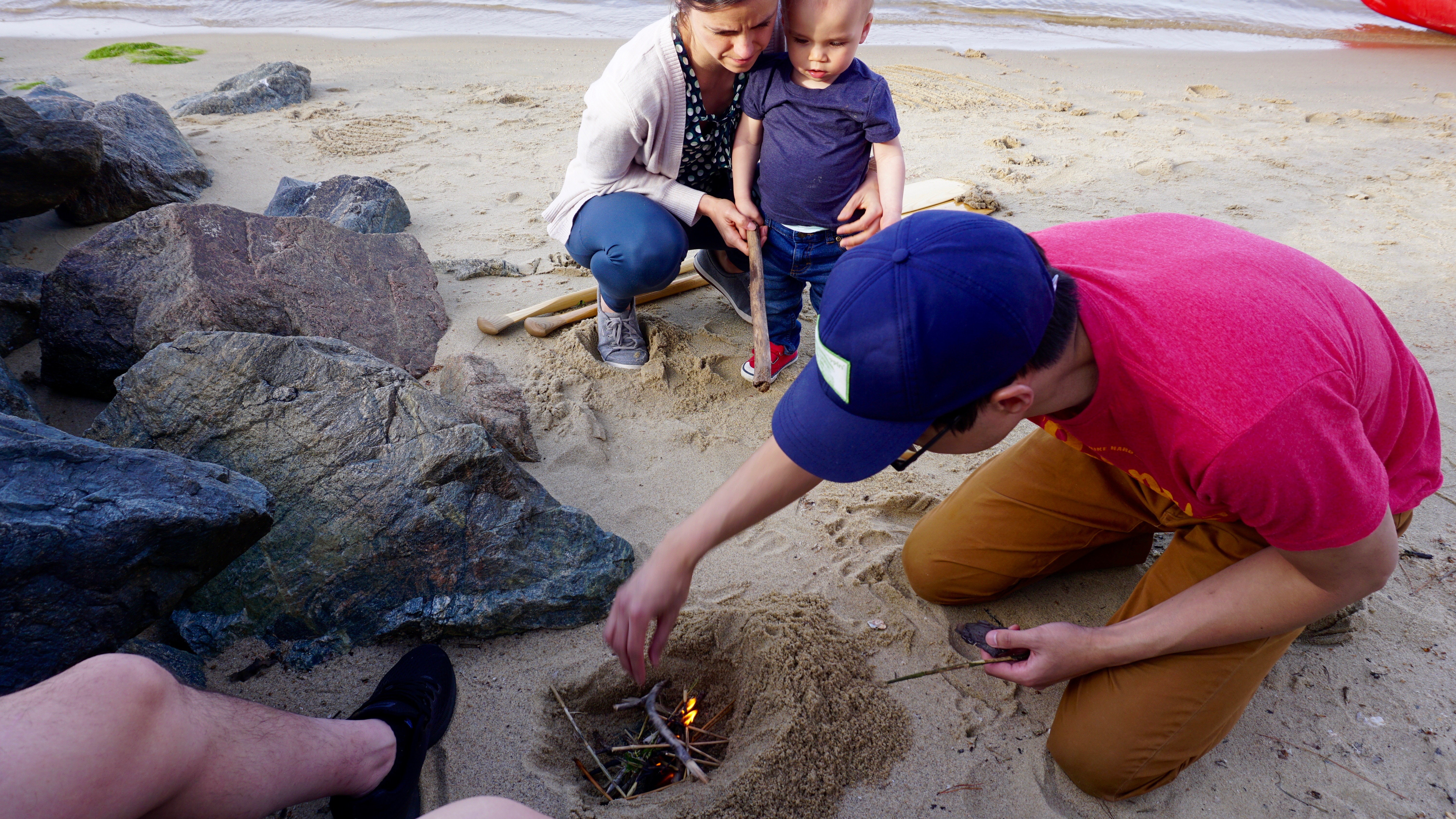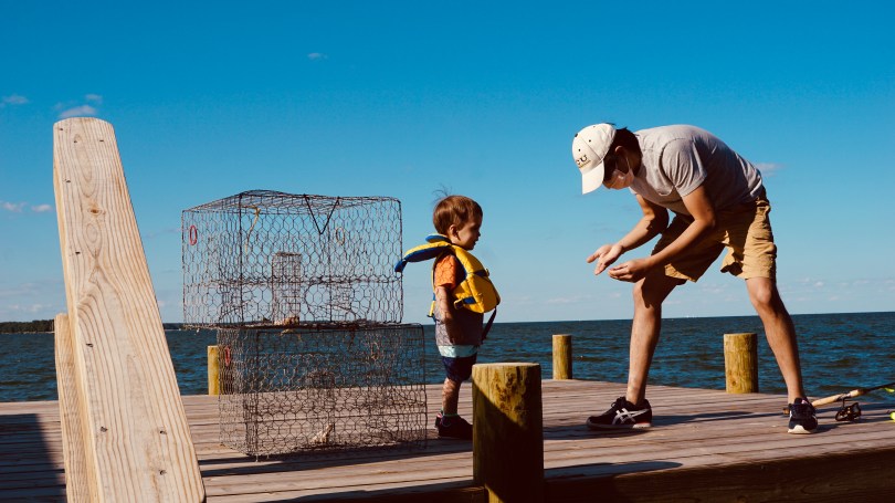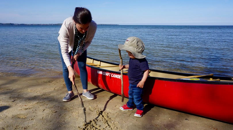 April is one of the best times of the year to get out on the water in Virginia. The weather is cool, the bugs are not out yet, and it doesn’t feel like a tropical rainforest. We used this opportunity to head east to where the mouth of the piankatank river opens to the mighty Chesapeake Bay. We brought out the ol prospector to hit the salty waters. This was our son’s first time at the beach also sitting in a canoe. He’s still a little too young to get out on the water but he was certainly excited to to get inside the canoe. The blue crabs don’t seem to be out and about yet, but we are getting the pots ready for May. It may also be possible to raise some oysters in these waters as well.This particularly area looks promising for all sorts of fishing. We spent the day, helping my father in law extend his deck, fishing and paddling. Although we didn’t catch anything, it was great to be outdoors, feel the breeze, warm in the sun and hunch over a small fire on the beach.